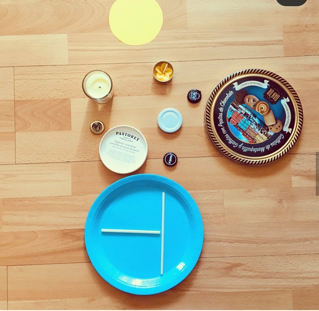 ¿Qué necesitaremos? Buscaremos por casa todos los materiales que tengamos de ese color y con los que podamos llevar a cabo una composición artística.