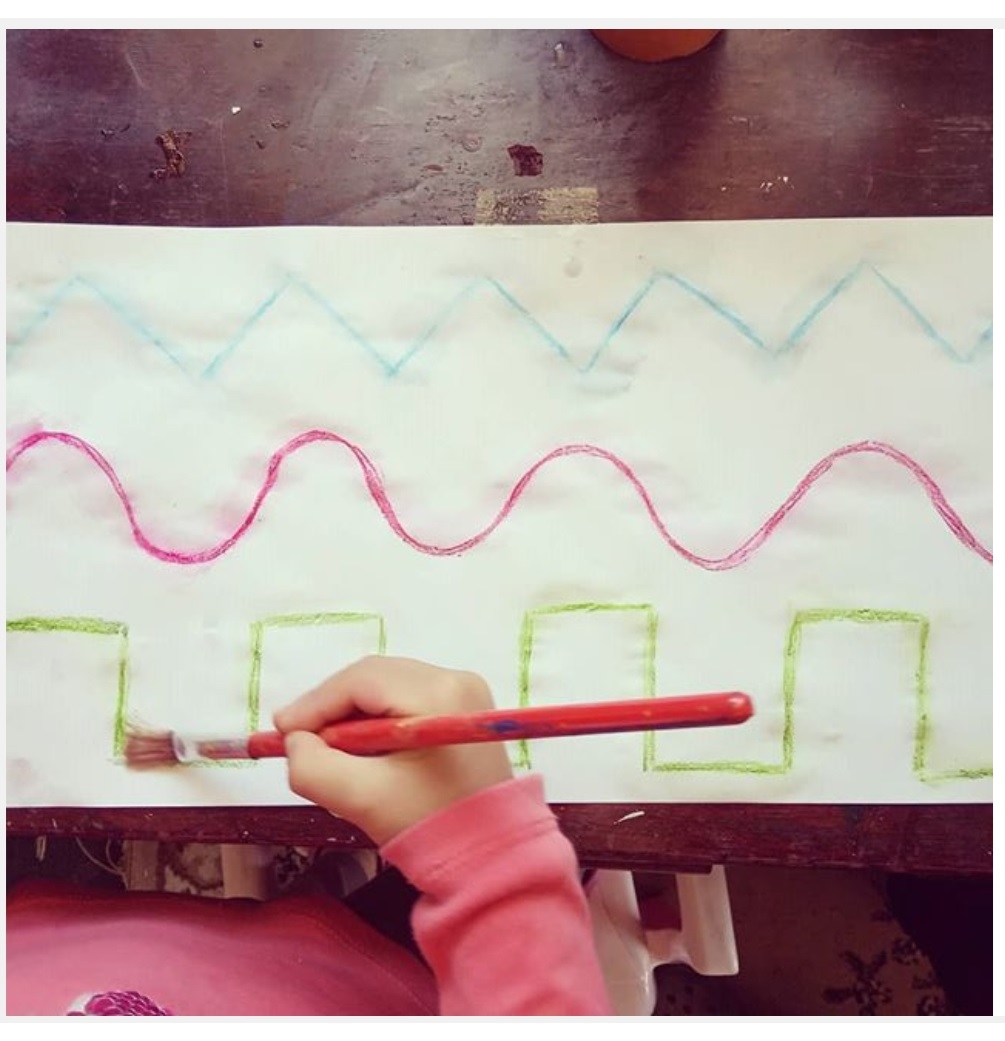 Como esta actividad nos va a resultar muy fácil, mamá o papá nos dibujarán unas ondas, unas montañas... e intentaremos ir pegando los rectángulos haciendo una serie, por ejemplo: rectángulo azul - rectángulo amarillo - rectángulo azul...